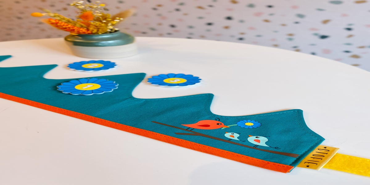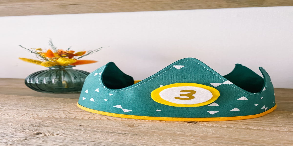 Met dit gratis patroon en de duidelijke beschrijving in een handige PDF is het naaien van een verjaardagskroon een fluitje van een cent.