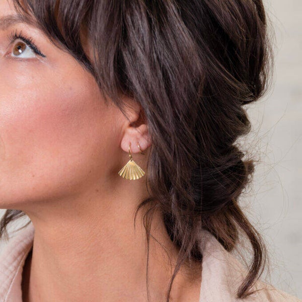 Klein, messing hangertje in de vorm van een waaier: