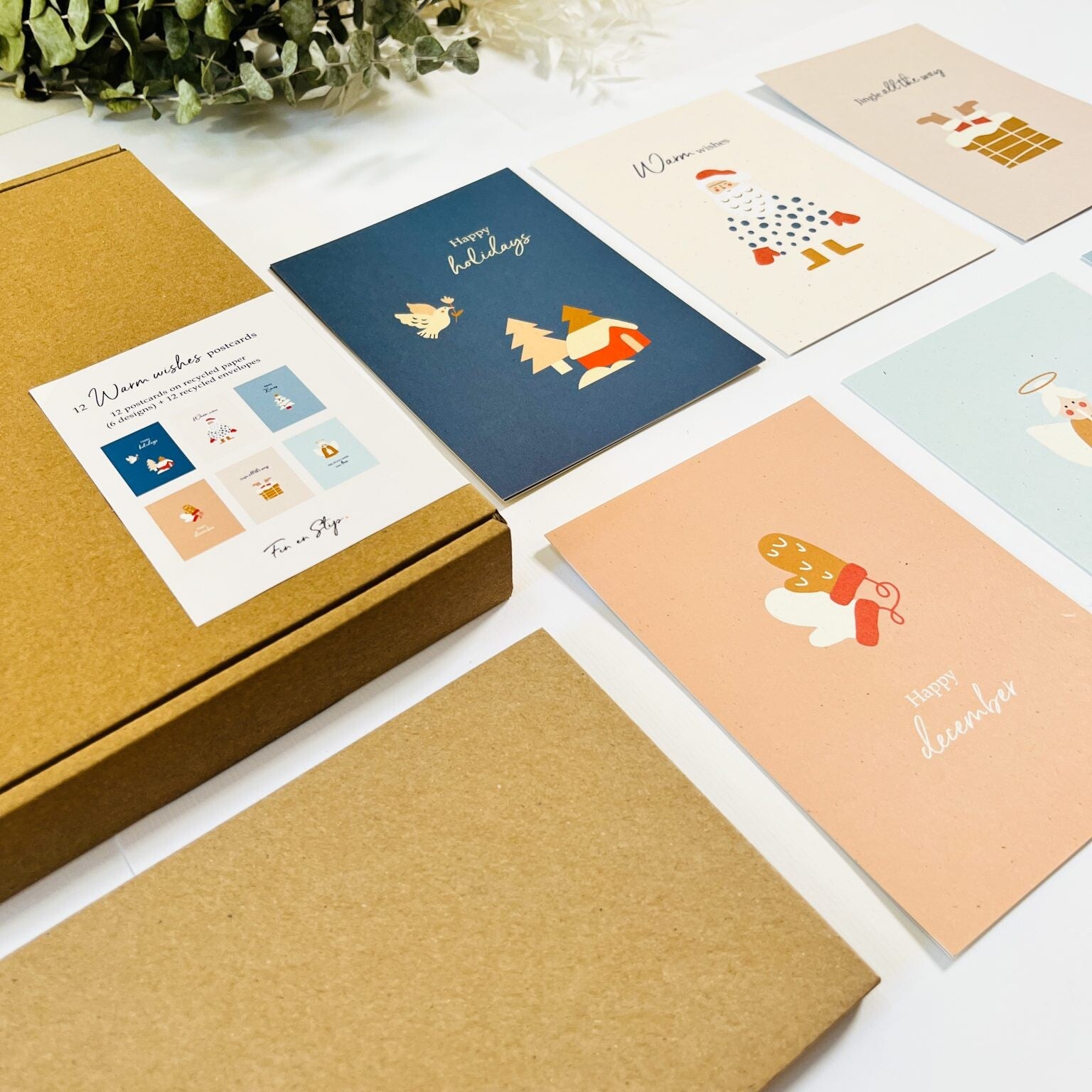 Doos met 12 ecologische kerstkaarten - Fin & Stip